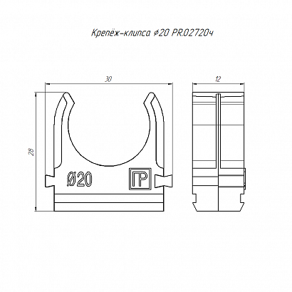 Крепёж-клипса для труб Полистирол черная d20 мм (100шт/1500шт уп/кор) Промрукав