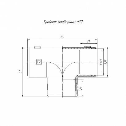 Тройник разборный черный d32 мм (15шт/180шт уп/кор) Промрукав
