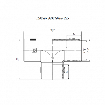 Тройник разборный d25 мм безгалогенный (HF) атмосферостойкий серый (30шт/300шт уп/кор) Промрукав