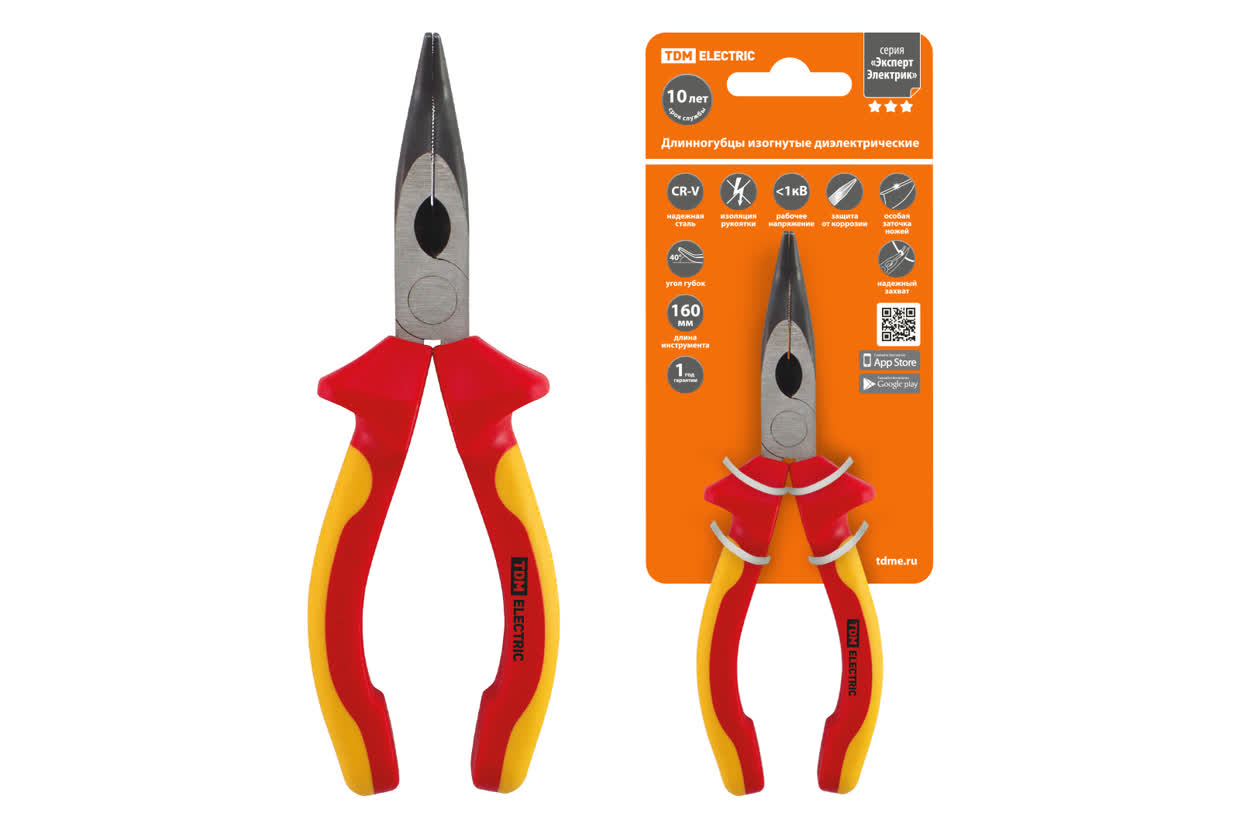 Длинногубцы изогнутые диэлектрические, 160 мм, 1000 В, CR-V, «ЭкспертЭлектрик» TDM