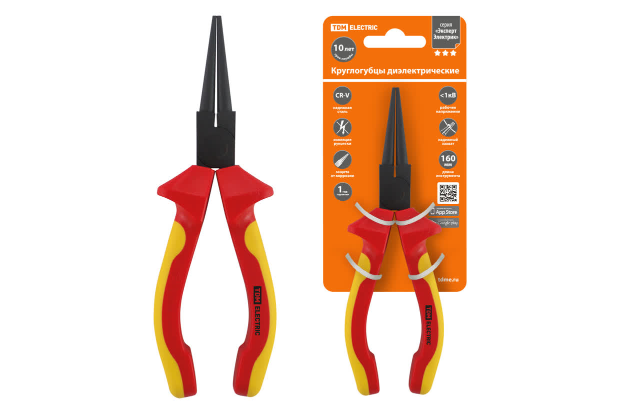 Круглогубцы диэлектрические, 160 мм, 1000 В, CR-V, «ЭкспертЭлектрик» TDM