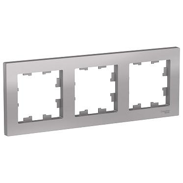 Рамка Systeme Electric (ранее Schneider Electric) серии AtlasDesign в цвете алюминий трёхместная.