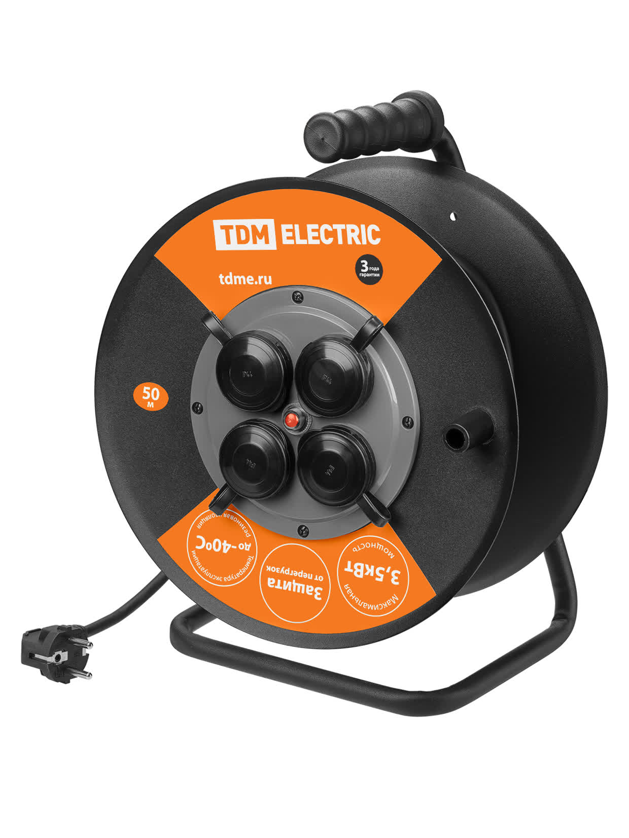 Удлинитель силовой УХз16-004 TDM (метал. катушка, А3, 4 места IP44/50м КГТП-ХЛ 3х1,5) УС1-43128