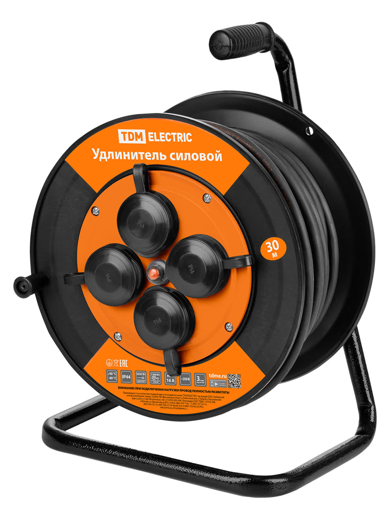 Удлинитель силовой УКз16-004 TDM (IP44 4 места/30м КГТП-ХЛ 3х1,5 пласт. катушка) УС1-43128