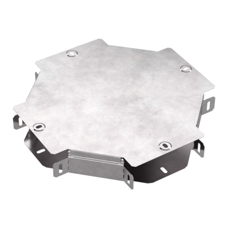 Х-образный ответвитель с крышкой Промрукав Стандарт 150х50 PR16.0459 предназначен для разветвления кабельных трасс в горизонтальном направлении, для перфорированных и глухих лотков.