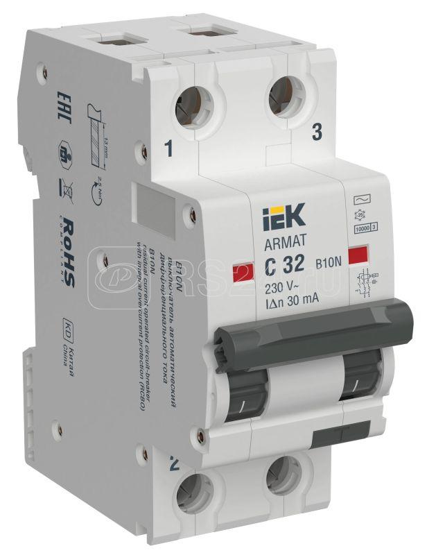 Выключатель автоматический дифференциального тока 2п C 32А 30мА тип AC АВДТ B10N ARMAT IEK AR-B10N-2