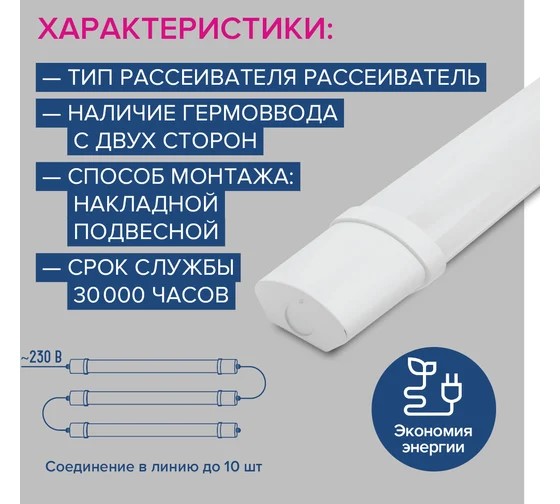 Одно из преимуществ данных светильников – соединение в линию (шлейфом). Максимальное количество светильников при шлейфовом соединении 12шт.