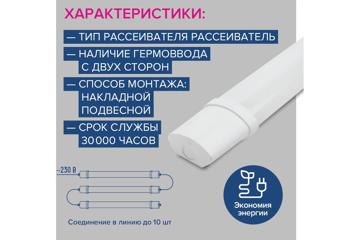 Одно из преимуществ данных светильников – соединение в линию (шлейфом). Максимальное количество светильников при шлейфовом соединении 12шт.