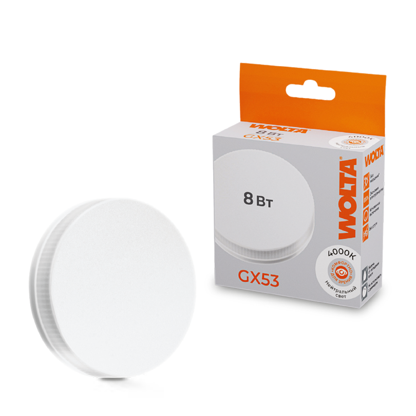 Светодиодная лампа WOLTA 25S75R8GX53 8Вт 4000K GX53