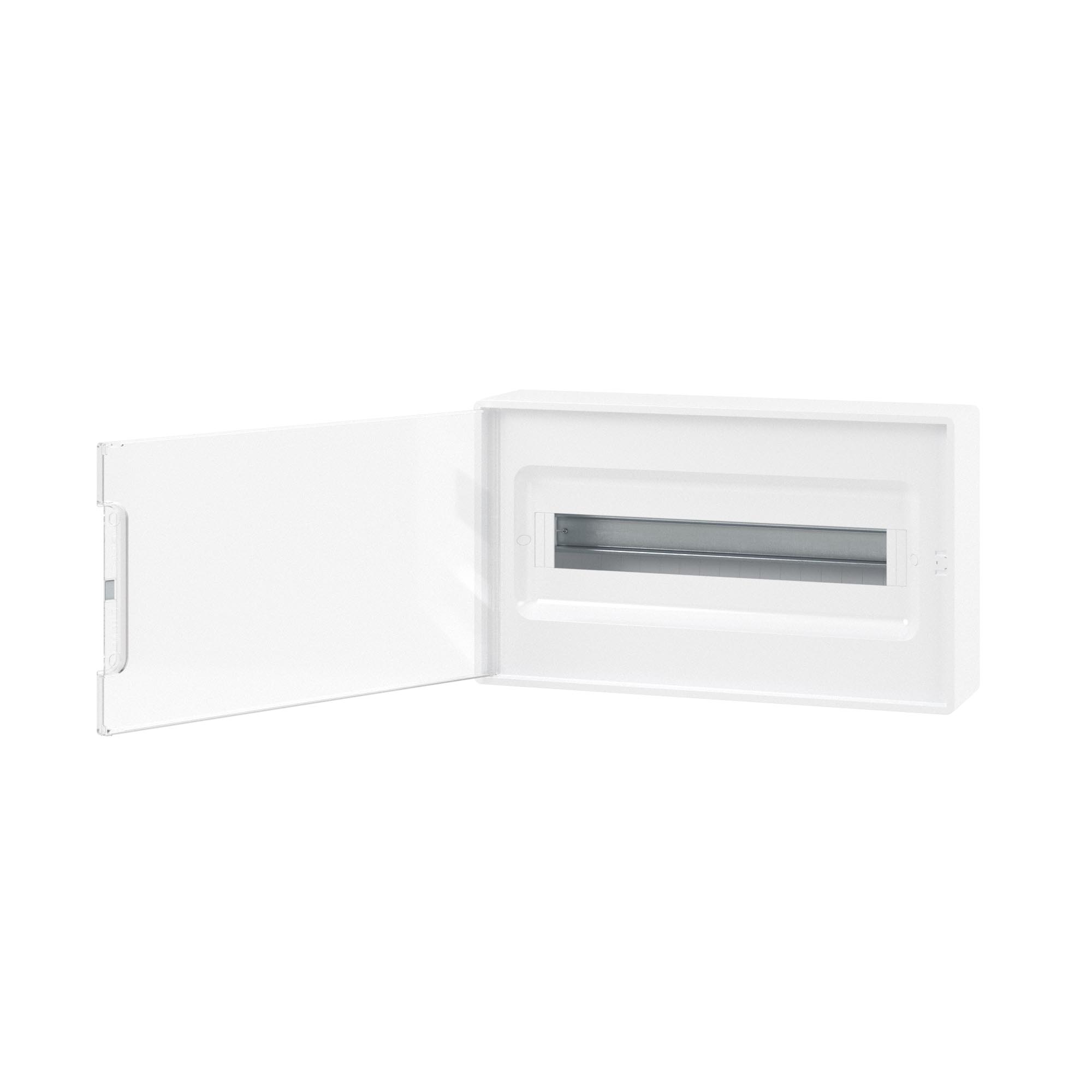 DKC FRAME Щиток 18 мод настенный , белый с прозрачной дверцей, с 2 шинами PEN на 8 и 10 отв. F18W1W