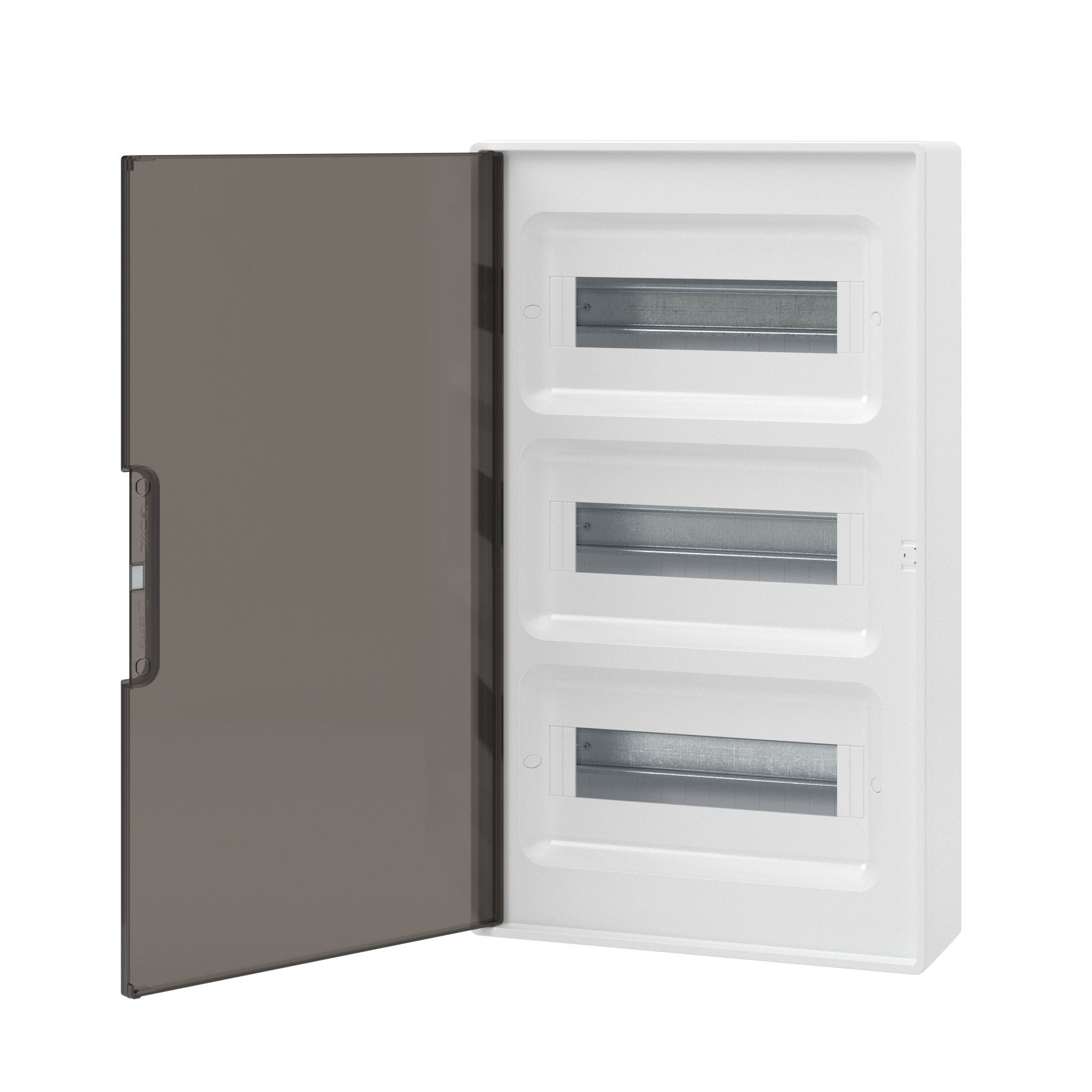 DKC FRAME Щиток 36 мод настенный , белый, с тонированной дверцей, с 4-мя шинами PEN (2шт на 8 отв. и