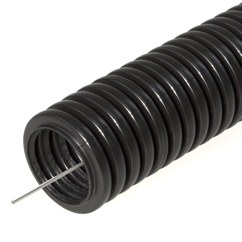Труба гофрированная ПНД безгалогенная (HF) черная с/з d25 мм (50м/2600м уп/пал) Строитель